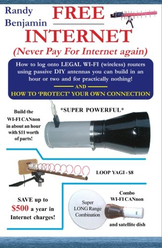 FREE Internet means exactly that…FREE INTERNET! This book describes in detail, how for a few dollars, you can build high-gain WI-FI antennas from parts you can find at your local hardware store. These antennas will allow you to ‘reach out’ and pickup those FREE Internet connections that are scattered across almost every community in the world. It’s fun! It’s easy! And it could save you from $25 to $60 a month in Internet service charges. Over a year’s time, you’re looking at $300 to $700+ in savings. Most of these antennas can be built for less than $15 in parts. The most powerful one, the ‘WI-FI CANnon’ takes about an hour to build and costs a whopping $11. If you don’t already have a USB adapter, add another $15 or so. That’s still less than you’d probably pay for the average broadband connection- EVERY month! To track down these FREE wireless connections, I’ve listed several websites where you can log in and find the ‘hotspots’ in your area. These ‘hotspots’ include WI-FI provided by local governments, libraries, Universities, park departments, hotels, motels, restaurants, RV parks, visitor centers, etc., and the list goes on and on. The websites are updated daily with new ‘hotspots’ appearing all the time. Are you having trouble getting an Internet signal to every room in your house or outside on the patio? I’ve included a chapter that shows you how to build a simple, cheap, ($1) WI-FI reflector that will solve these problems. You can build it in about ten minutes using cardboard and aluminum foil! Also included is a chapter on how to stop hackers, neighbors or anyone else from logging onto ‘your’ wireless connection. If you’re tired of paying for Internet…FREE Internet could help you to get off the Internet’s “money-go-round” and start saving money instead of spending it! FREE Internet is also available on Amazon as a Kindle ebook. Visit my webpage for more information http://www.randybenjamin.comISBN13: 9780967936130